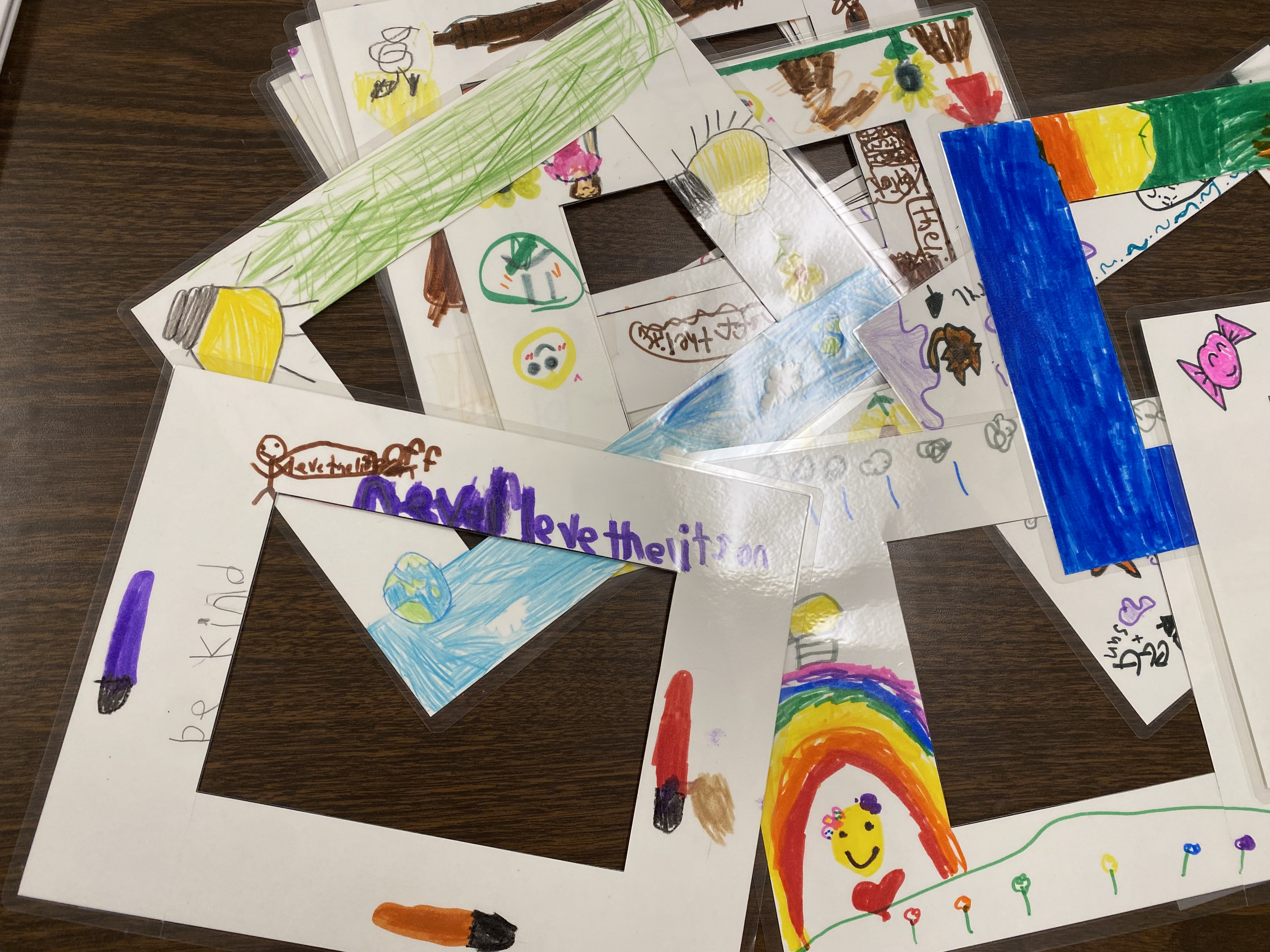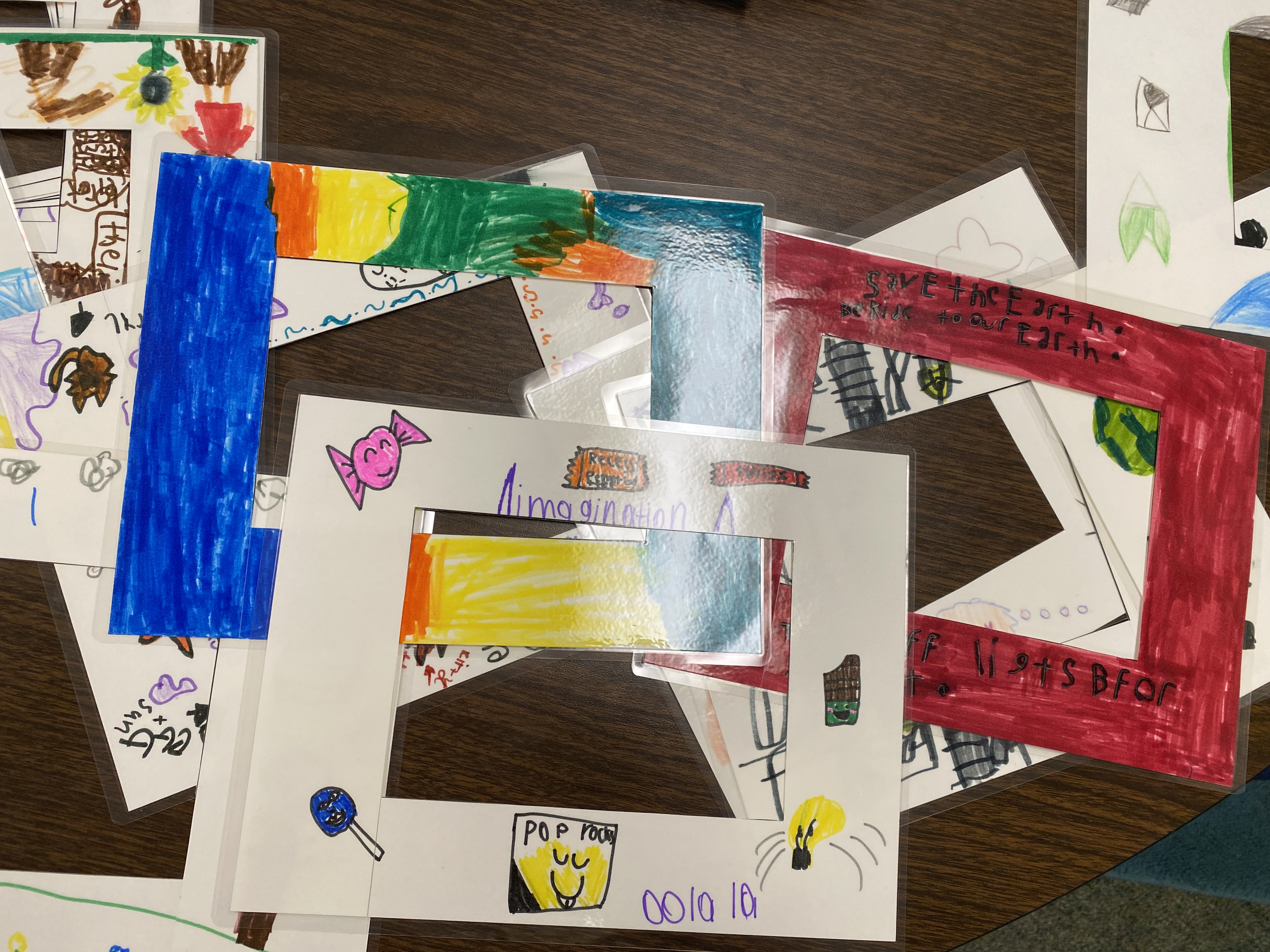 Examples of light switch plate covers designed and created by second graders.