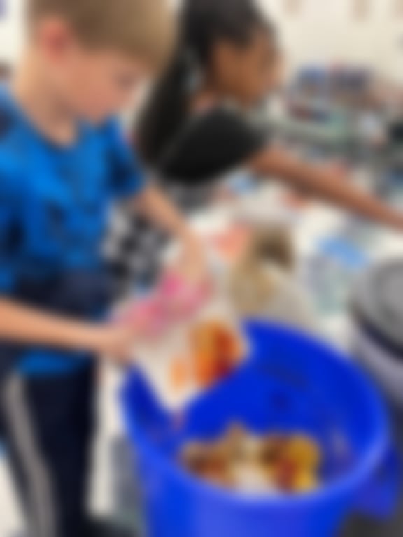 Fourth graders recycling food waste.