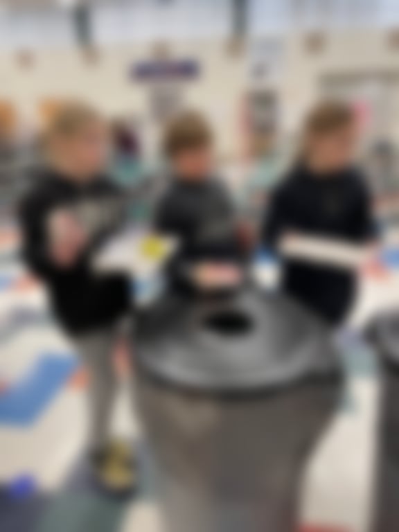 Students place trash in a designated bin.