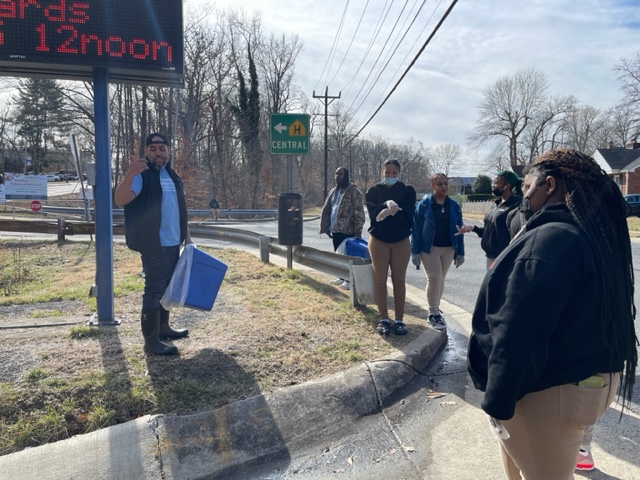 Joe's stream Team came to the school and provided stream litter management literacy to clean the stream in the neighborhood.