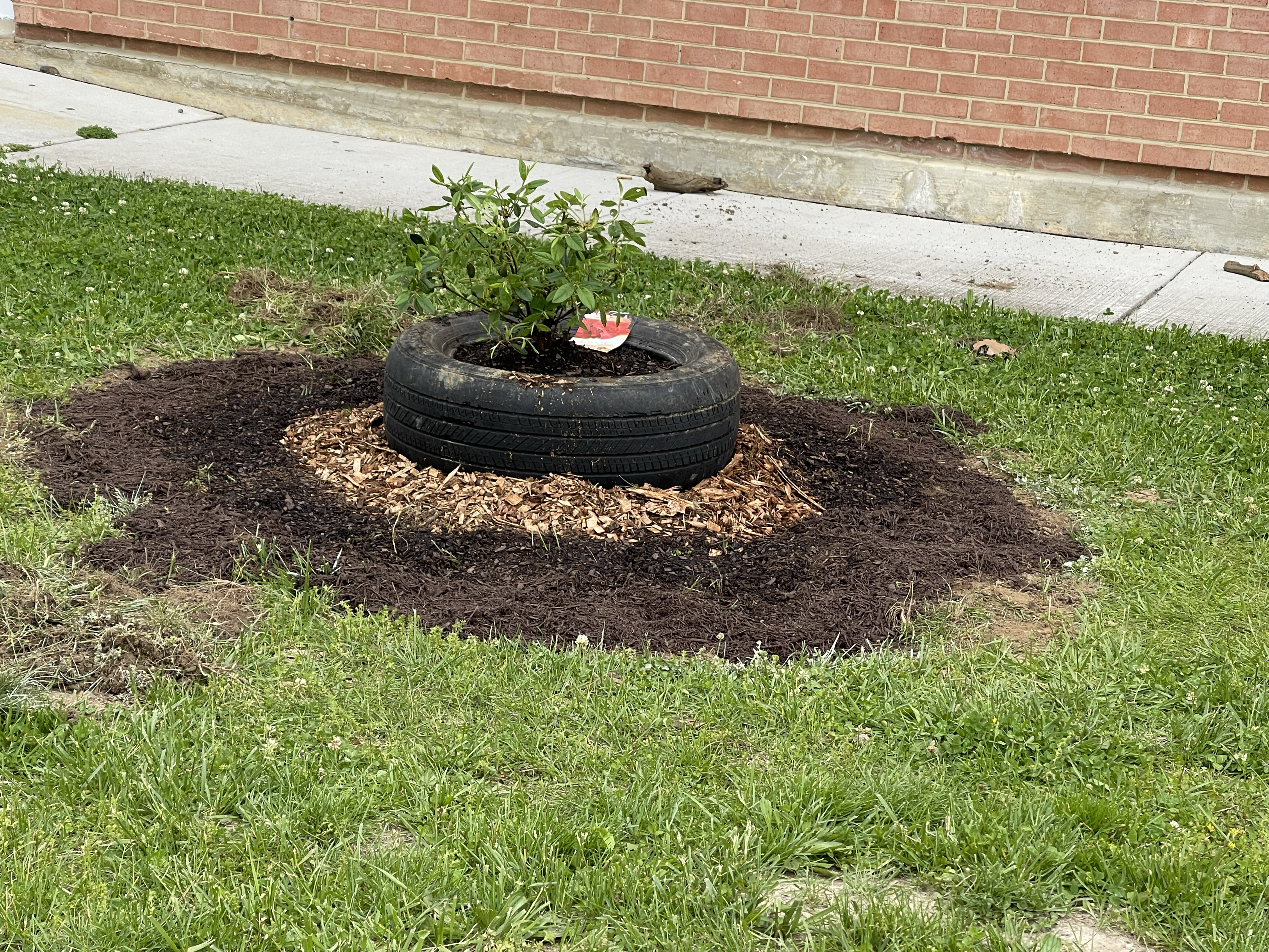 The school received 80 plants and trees from the district. Around 150 students participated in creating new habitats.