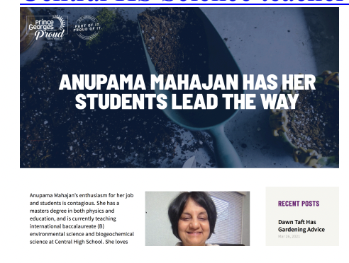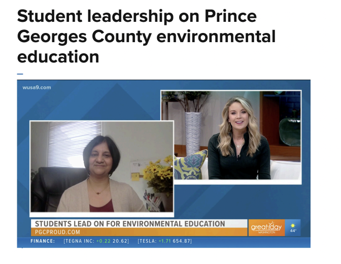 Good Morning Washington, in collaboration with PGCproud, did aTV piece on Ms. Mahajan, the green Team leader from Central High School. Ms. mahajan was the first in the series on PGproud introduced by the district.