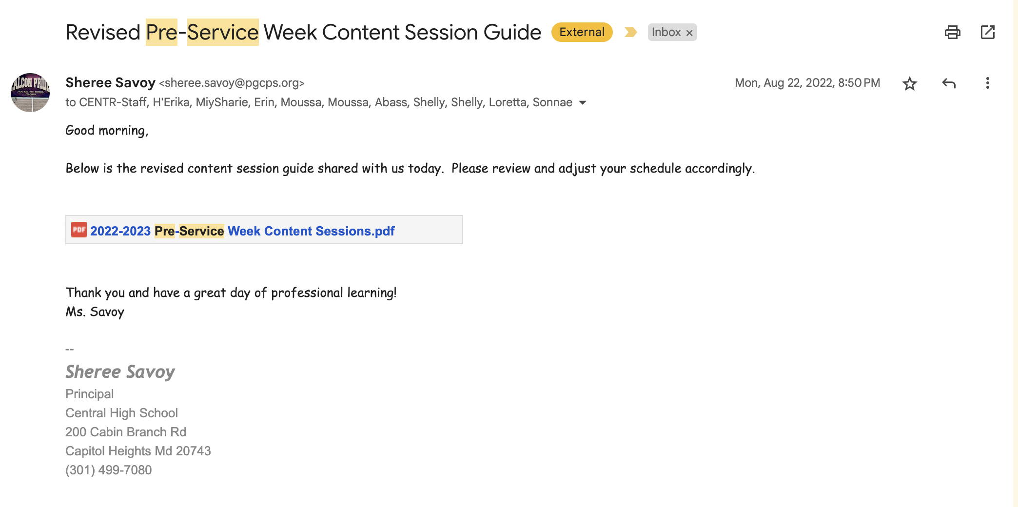 For the staff of 50 members, we had the Litter management workshop from the DoE, PG County. Ms. Tiaa Rutherford was the presenter. A Zoom meeting was conducted during the Department meetings. Ms. Rutherford talked about various waste management activities the district has initiated. The staff enjoyed her workshop and had active discussions. Jan 18-Feb 8,2023