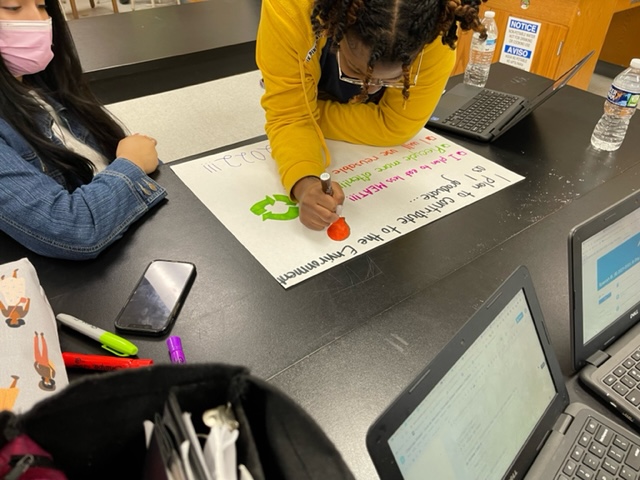 The students celebrated the Earth Day, April 22,2022. They did trash announcement on the PA system in 6 different languages. They also did Trash cleanup, made posters for awareness.