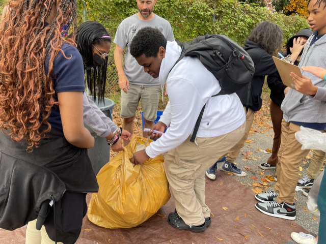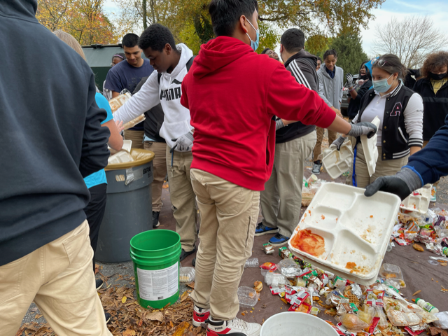 The students conducted a trash audit with the Smithsonian in order to plan for their future action for the school. Around 40 students participated in this event.