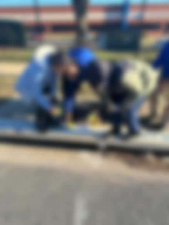 The Green Team Students Partnered with the Schmidt Center, to have our students label our storm drains to remind everyone that the storm drains lead to the Chesapeake Bay.