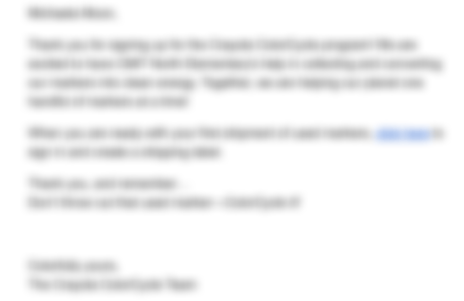 Students collected used/broken markers donated them to the Crayola Education Recycling Program. All of those markers are diverted away from our local landfill and returned to Crayola for processing.