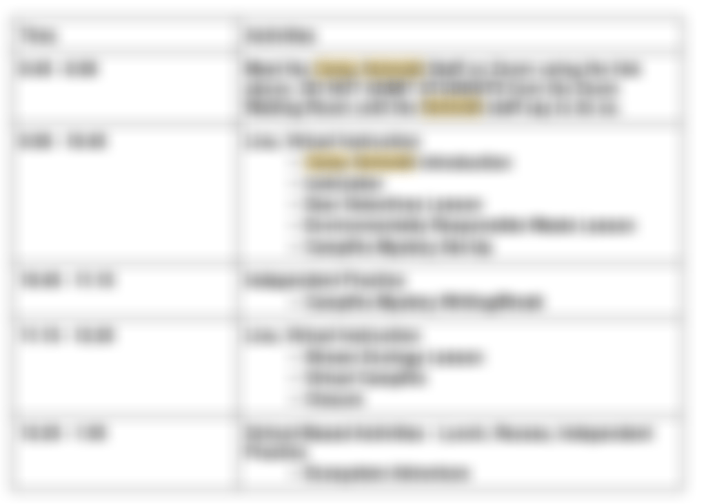 Students participated in the counties online Camp Schmidt program. They learned about animal habits. They learned to help the environment. Students made a word wall during a virtual Camp Schmidt field trip sharing words that are important to environmental literacy.