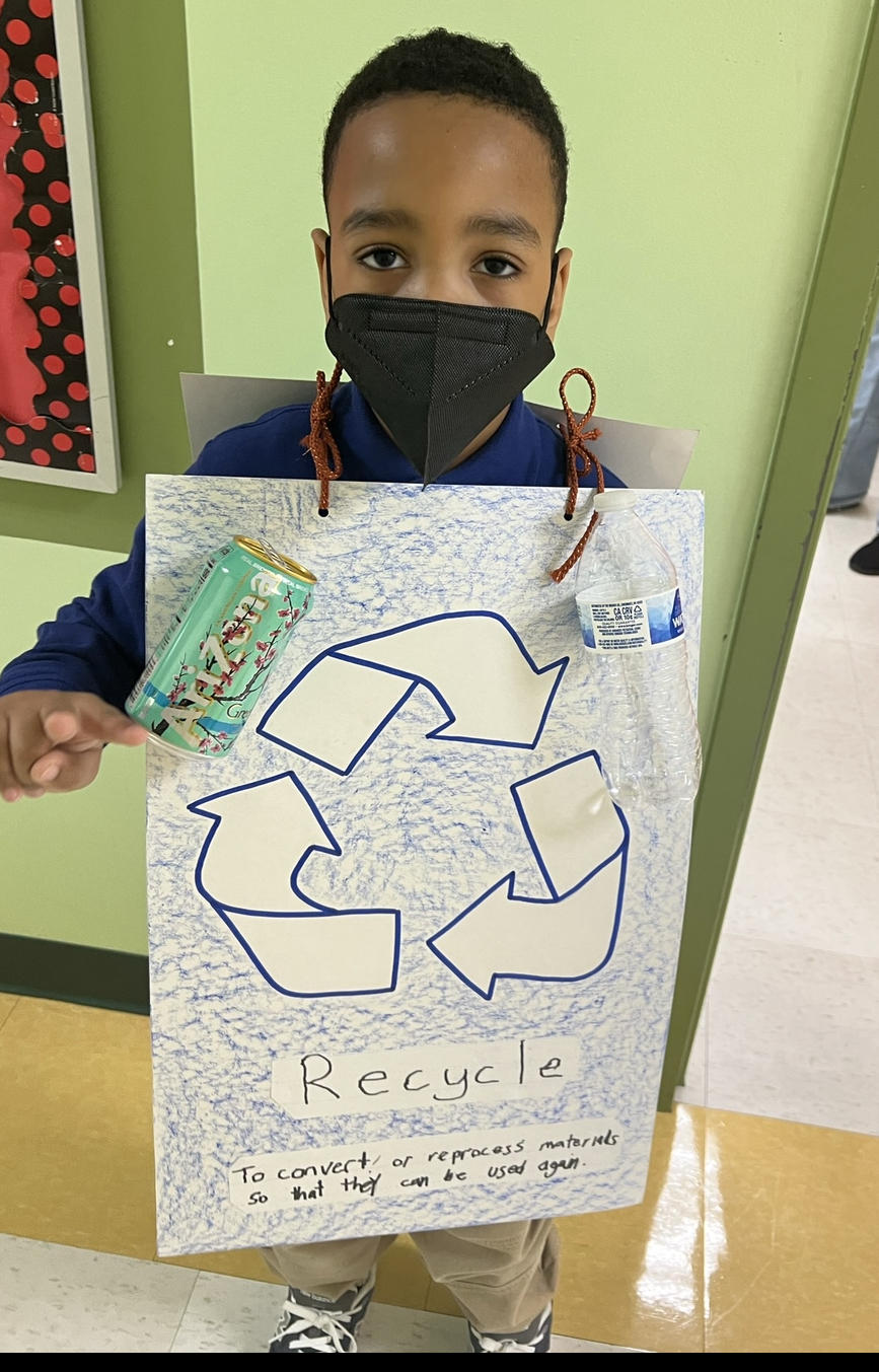 Students love to participate in our recycled costume word parade! Students pick their favorite STEM word and use old materials to create a costume. This has become a school wide tradition. Students learn to be environmentally aware off ways they can help the environment.