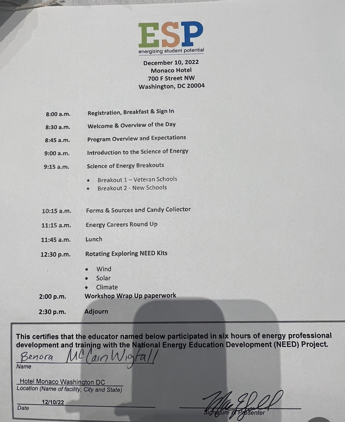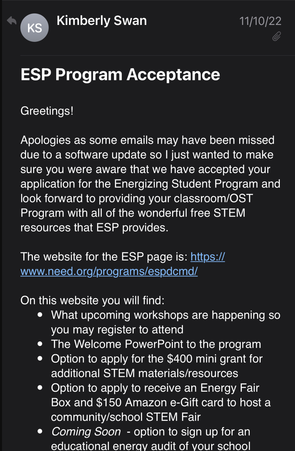 We also have partnerships will Esp Need program. They provide resources and professional developments to promote energy efficiency knowledge amongst stakeholders.