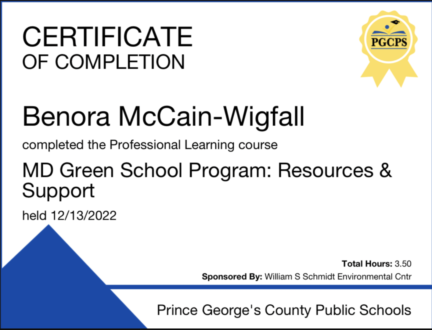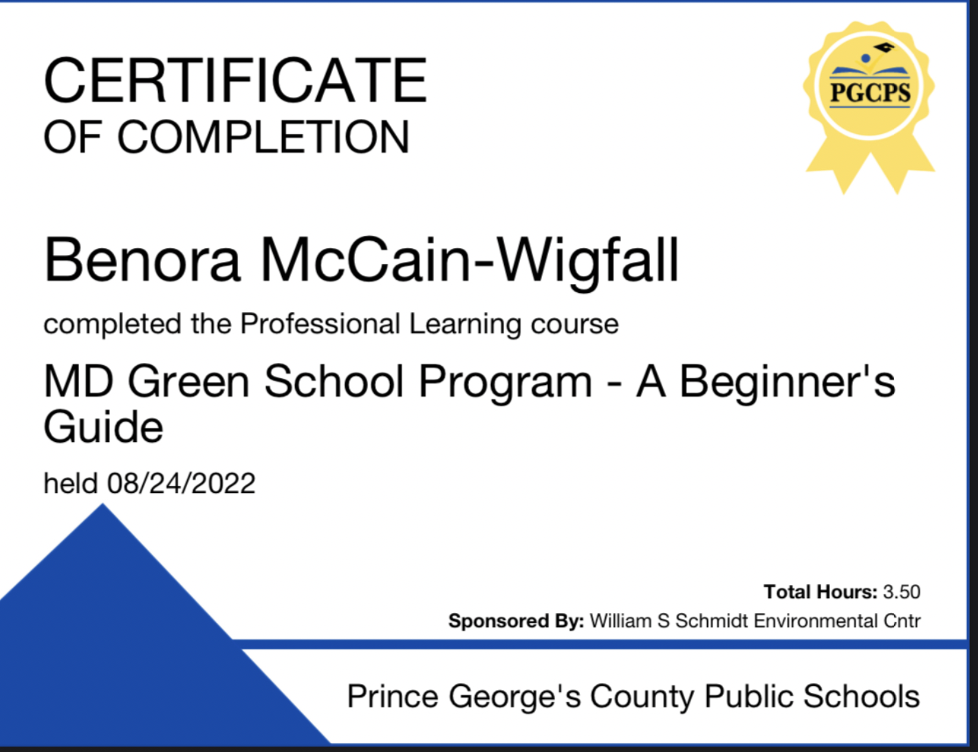 We partner with the PGCPS Building Services with the Office of Recycling each year to complete a waste reduction plan.