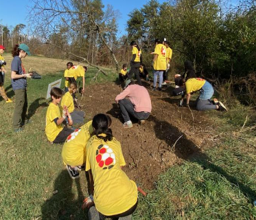 During our Good Neighbor Day event, students, families, and community volunteers cleared invasive plant species to establish an area where native plants can thrive.