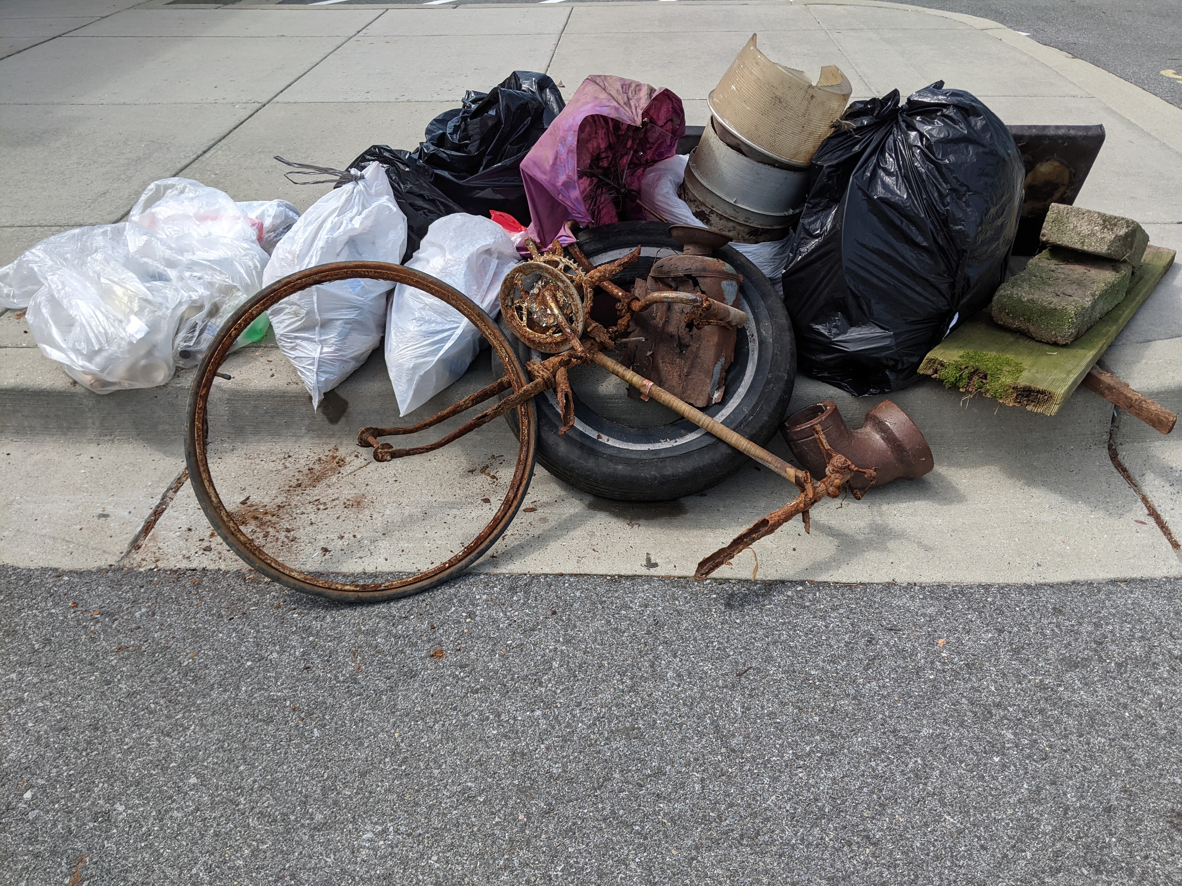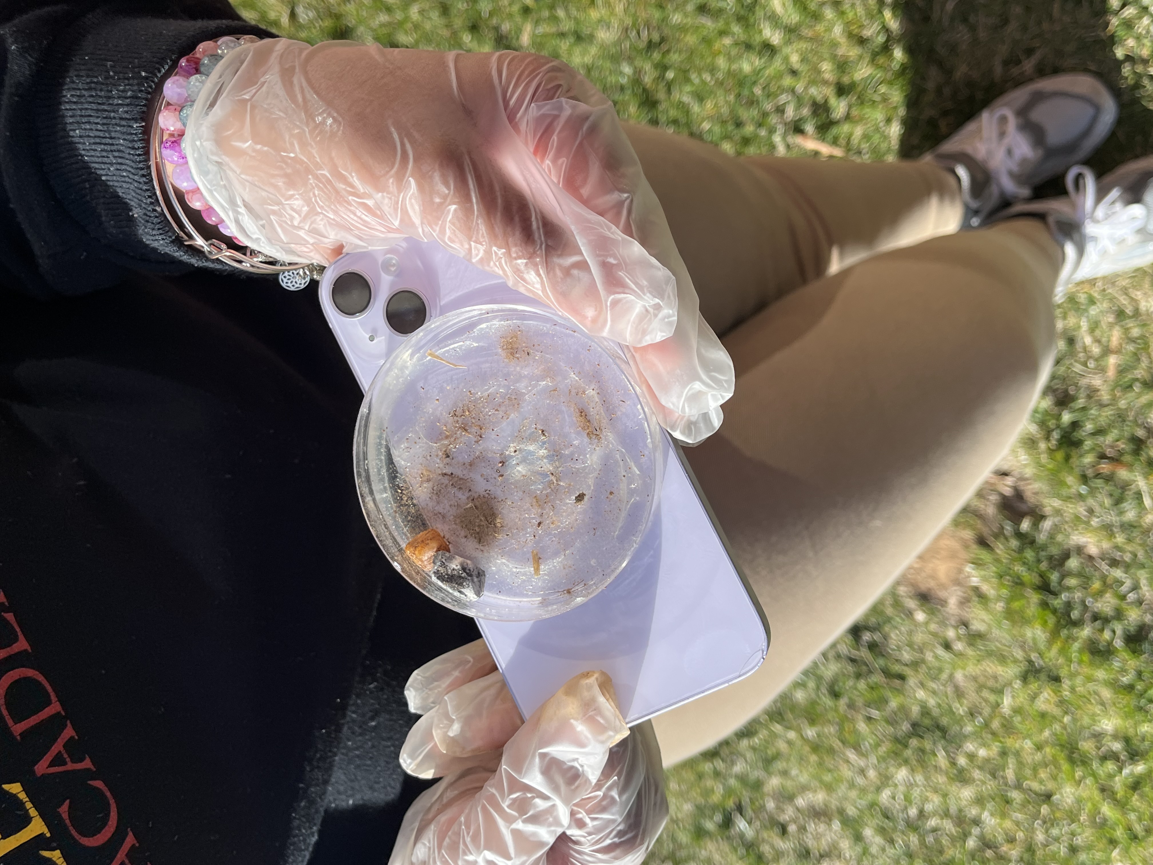 Students celebrated Earth Day by removing litter from the schoolyard and surrounding area to reduce the possibility of the litter reaching the waterways.
