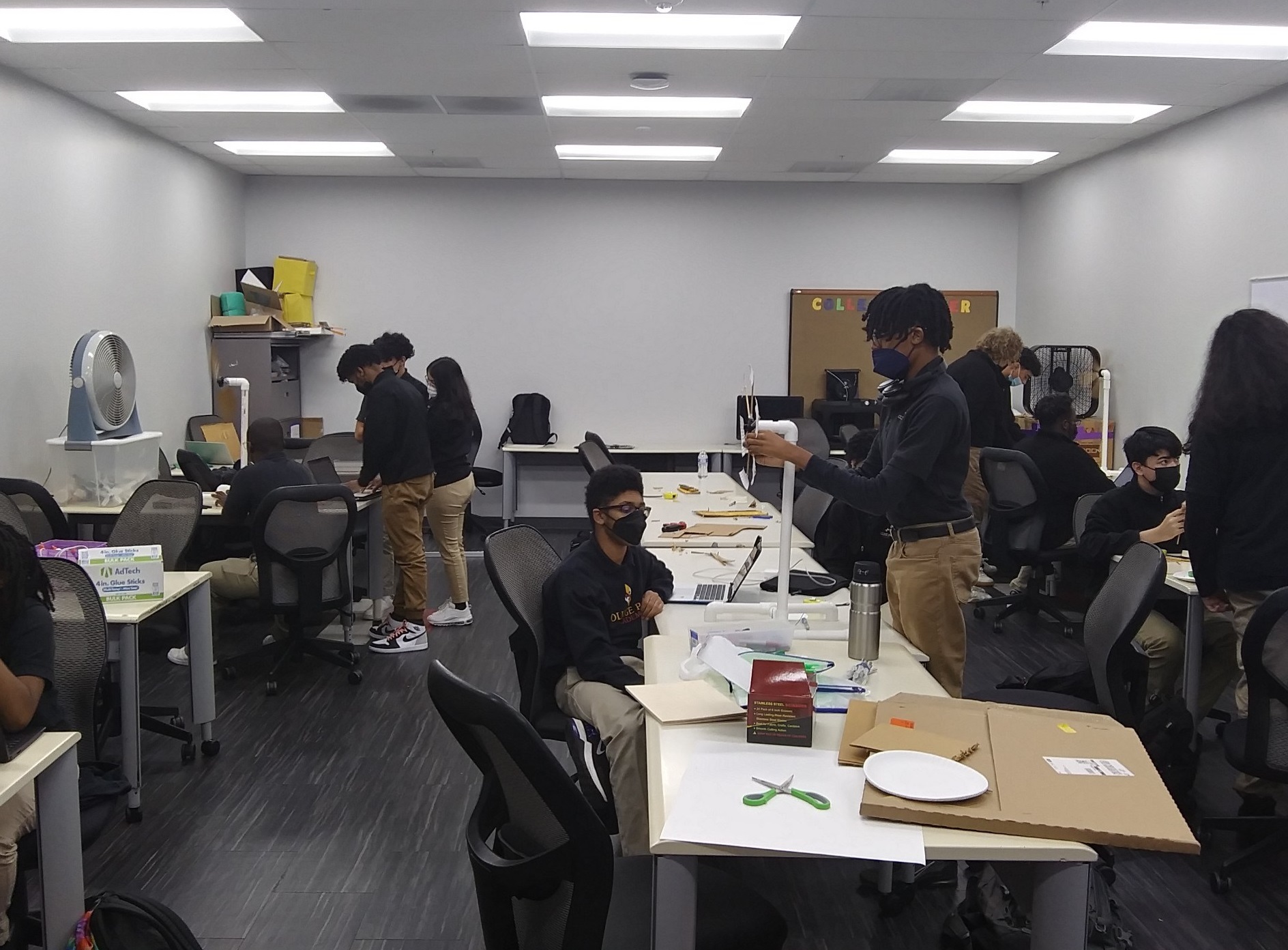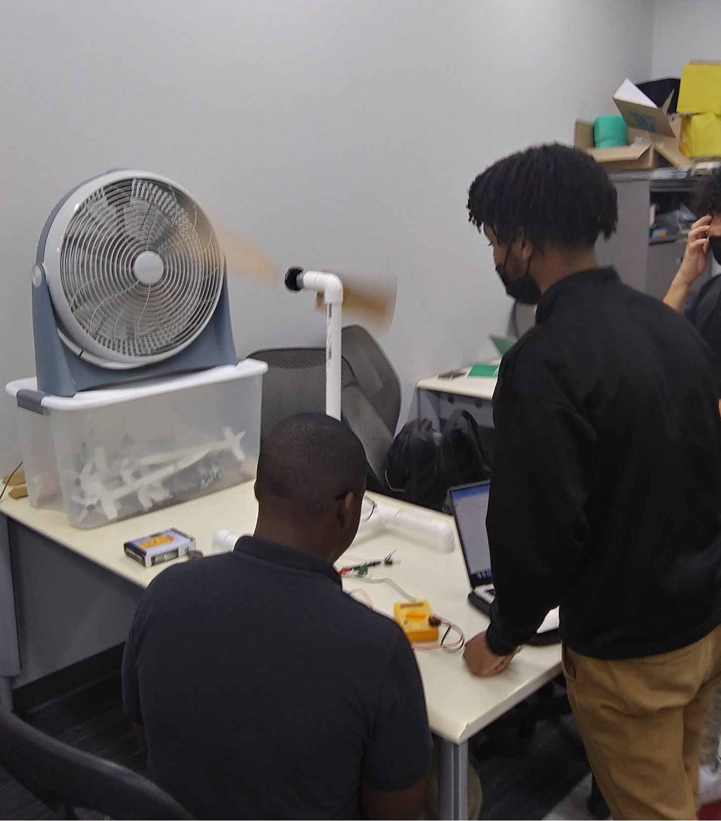 In e4usa, engineering essentials, 11th and 12th grade students investigated the potential impact of wind turbines. Over a 1-month period, we discussed the sources or electrical power in our region and their long term effects on the environment. Students then worked in groups to test a specific variable relating to wind turbine blade design. The results of these tests were used to inform decisions in creating a wind turbine blade that would work best with average wind velocities in our region.