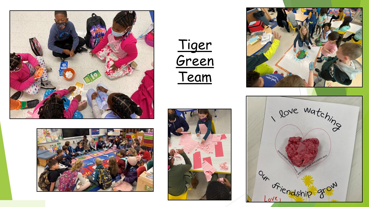 Students in the Tiger Green team met monthly to learn various green lessons and tips. During the 2020-2021 school year we met virtually and in 2021 we brought back in-person meetings. During our meetings, members learn many Environemtal topics and complete lots of hands-on activities.