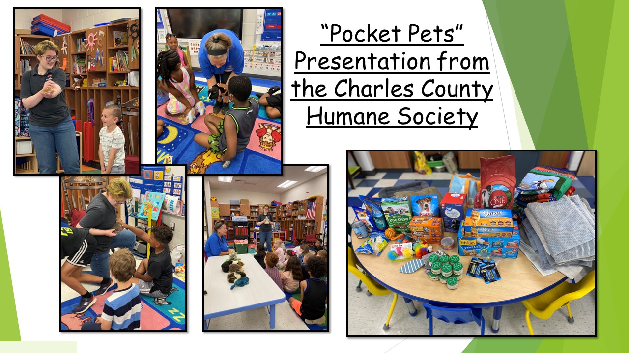 Brief Description of Partnership: On May 31, 2022, our Dr. James Craik Tiger Green Team, Pre-K Students and 1st graders (142 students) partnered with the Charles County Humane Society to take up a collection of items to donate to their organization. Students had the opportunity to learn about "Pocket Pets" and how to care for them. Students collected items to donate to the Humane Society. Students enjoyed learning about what pets needs and which pets are "pocket pets."