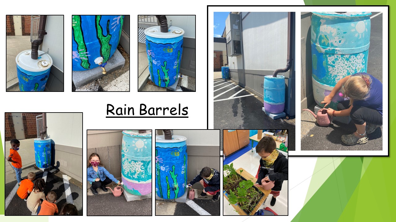 In the spring of 2021, our school had two rain barrels installed on our school grounds. Students and staff use these rain barrels to water their classroom plants and the plants around our outdoor classroom. 519 students have access to the rain barrels.