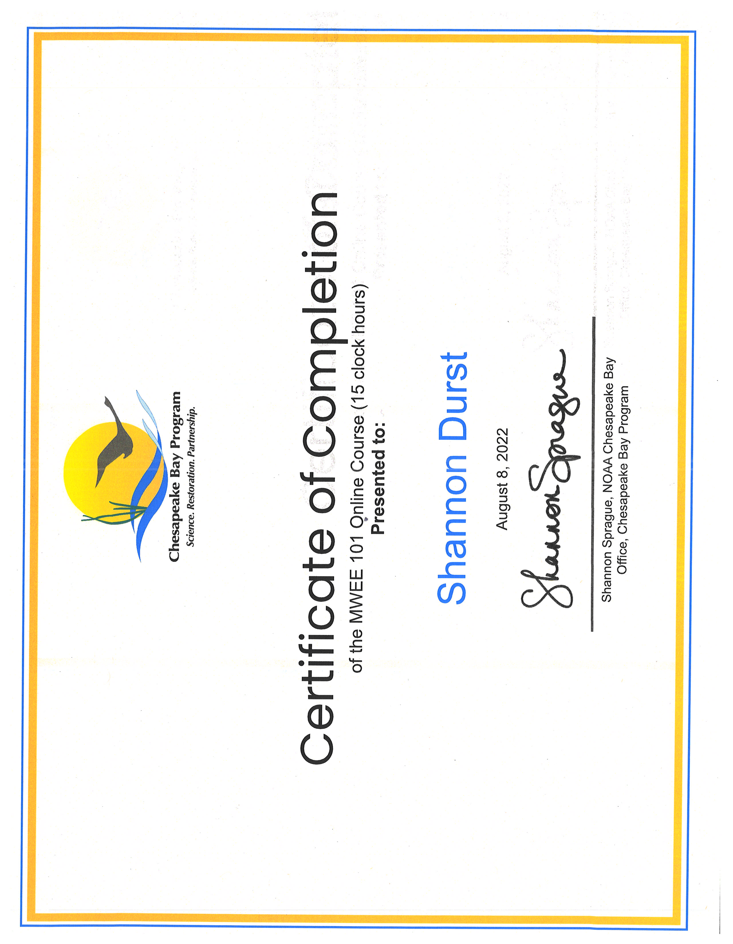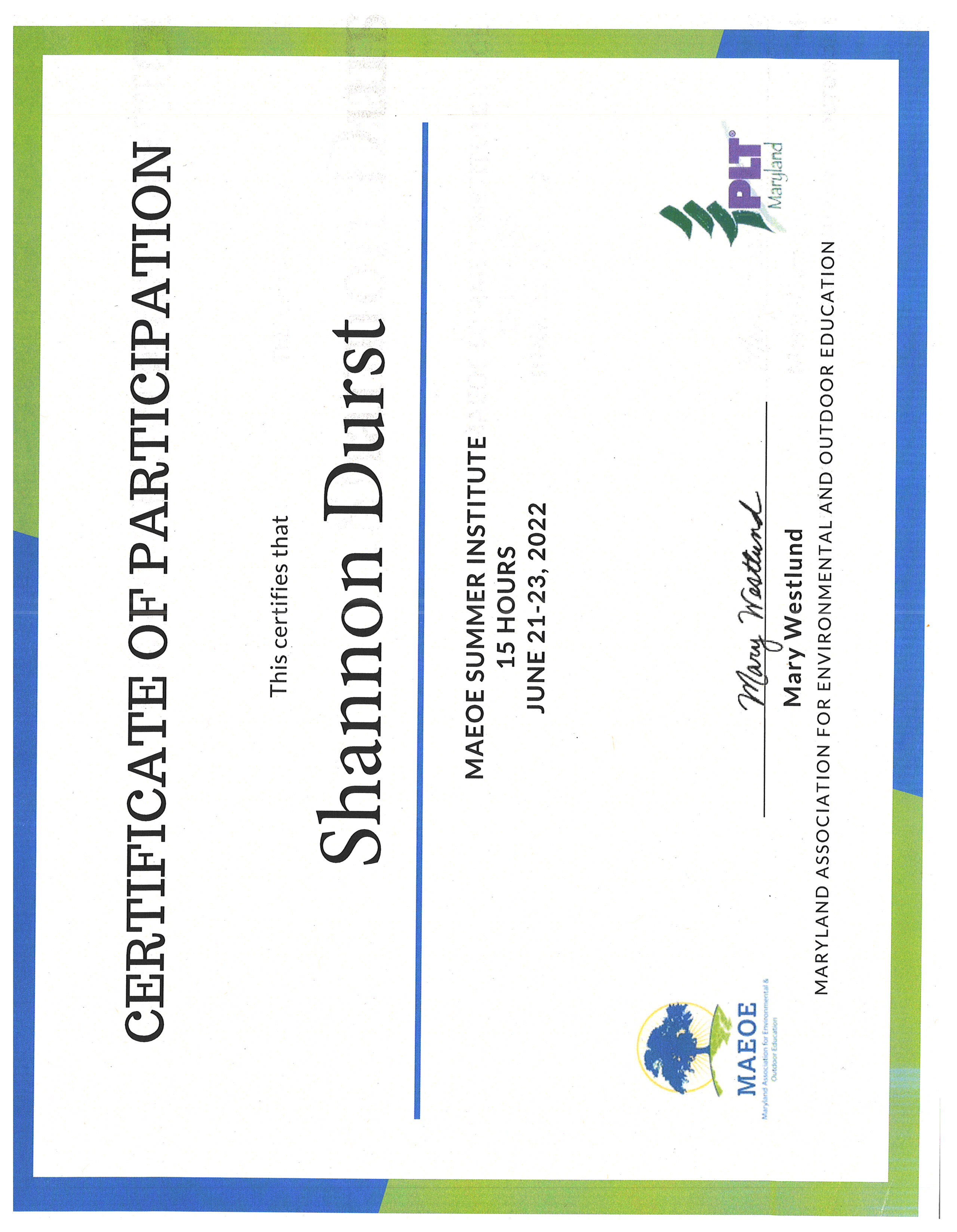 Shannon Durst participated in the MAEOE Summer Institute from June 21-23, 2022 and the MWEE 101 Online course.