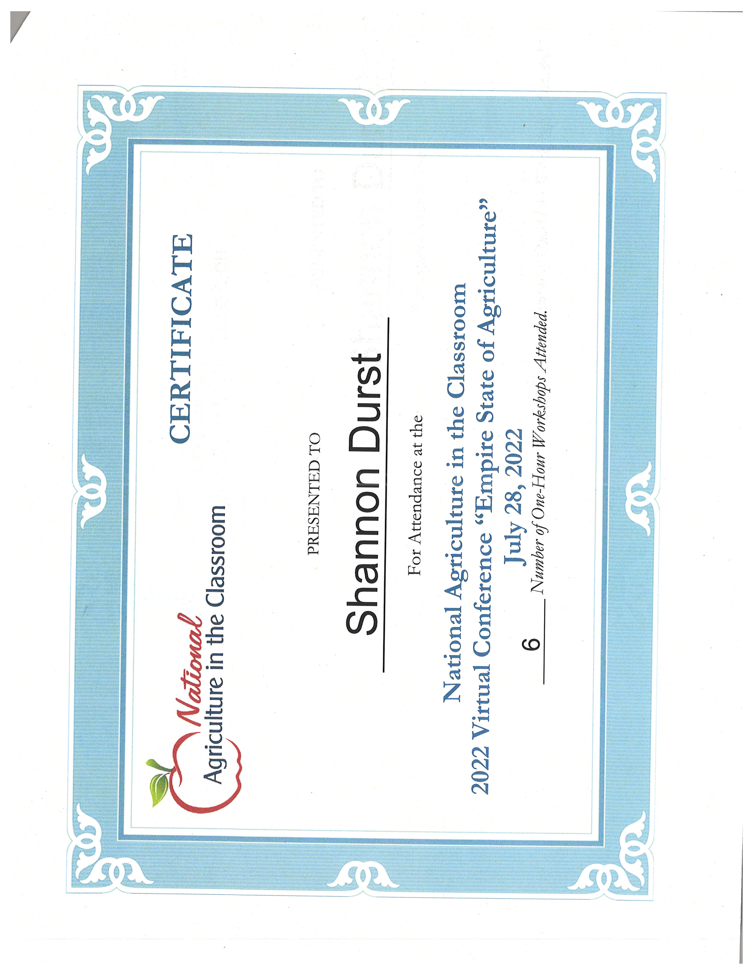 Shannon Durst participated in the National Ag in the Classroom Virtual Summer Conference.