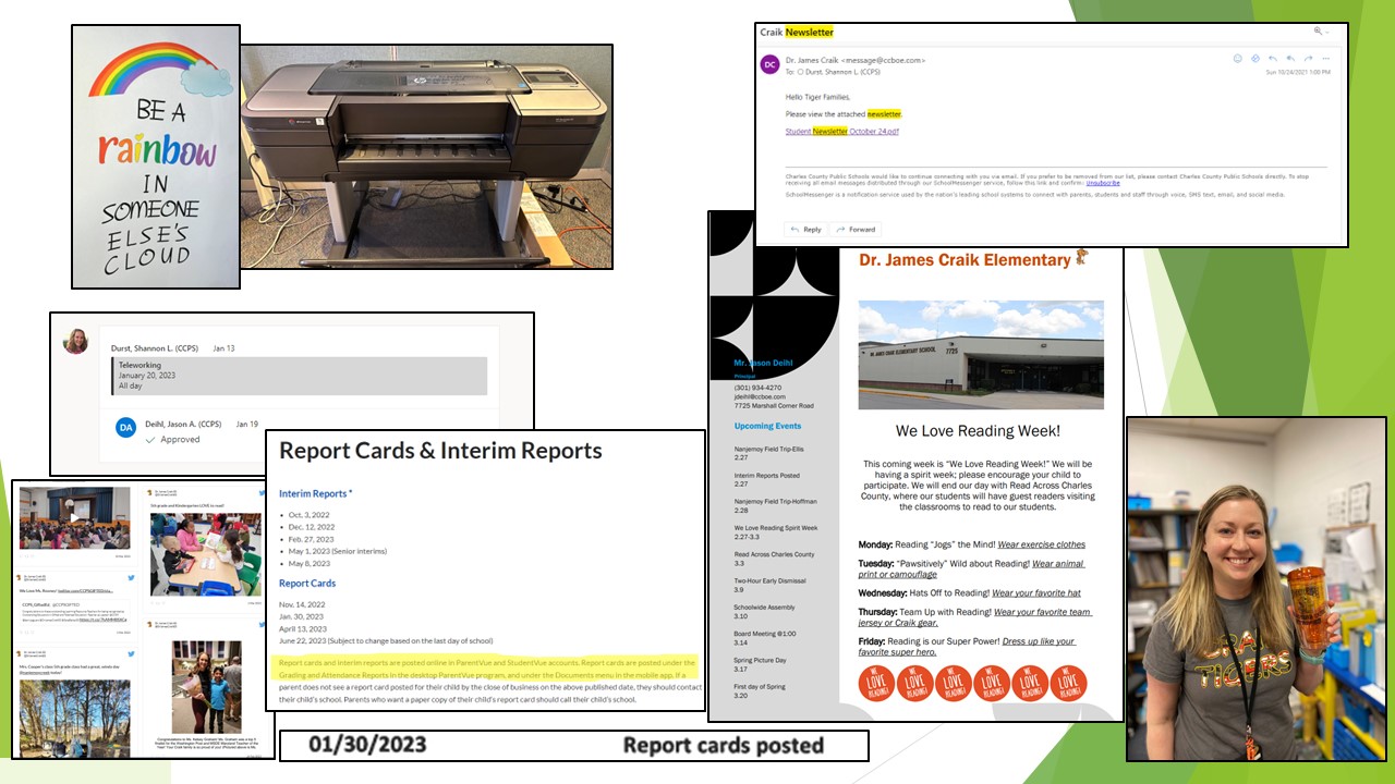 Our school has moved from paper to digital school newsletters. 100% of families within our school now receive digital school newsletters rather than printed school newsletters. This practice has helped save paper. Our school also uses Facebook and Twitter more frequently to share updates, flyers and fun happenings at our school.