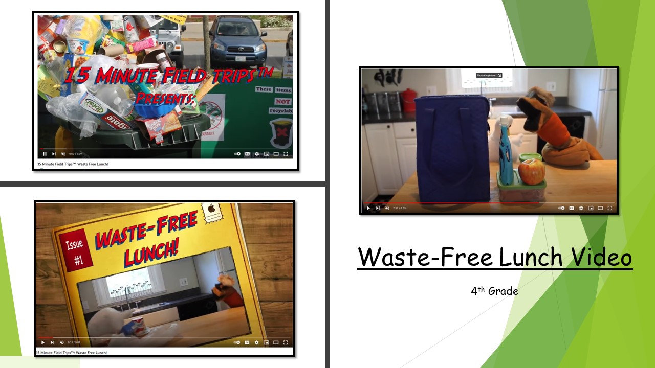 Students previewed a Waste-Free Lunch video and had a discussion about why it is important to have waste-free lunches. They learned how to have a waste-free lunch.