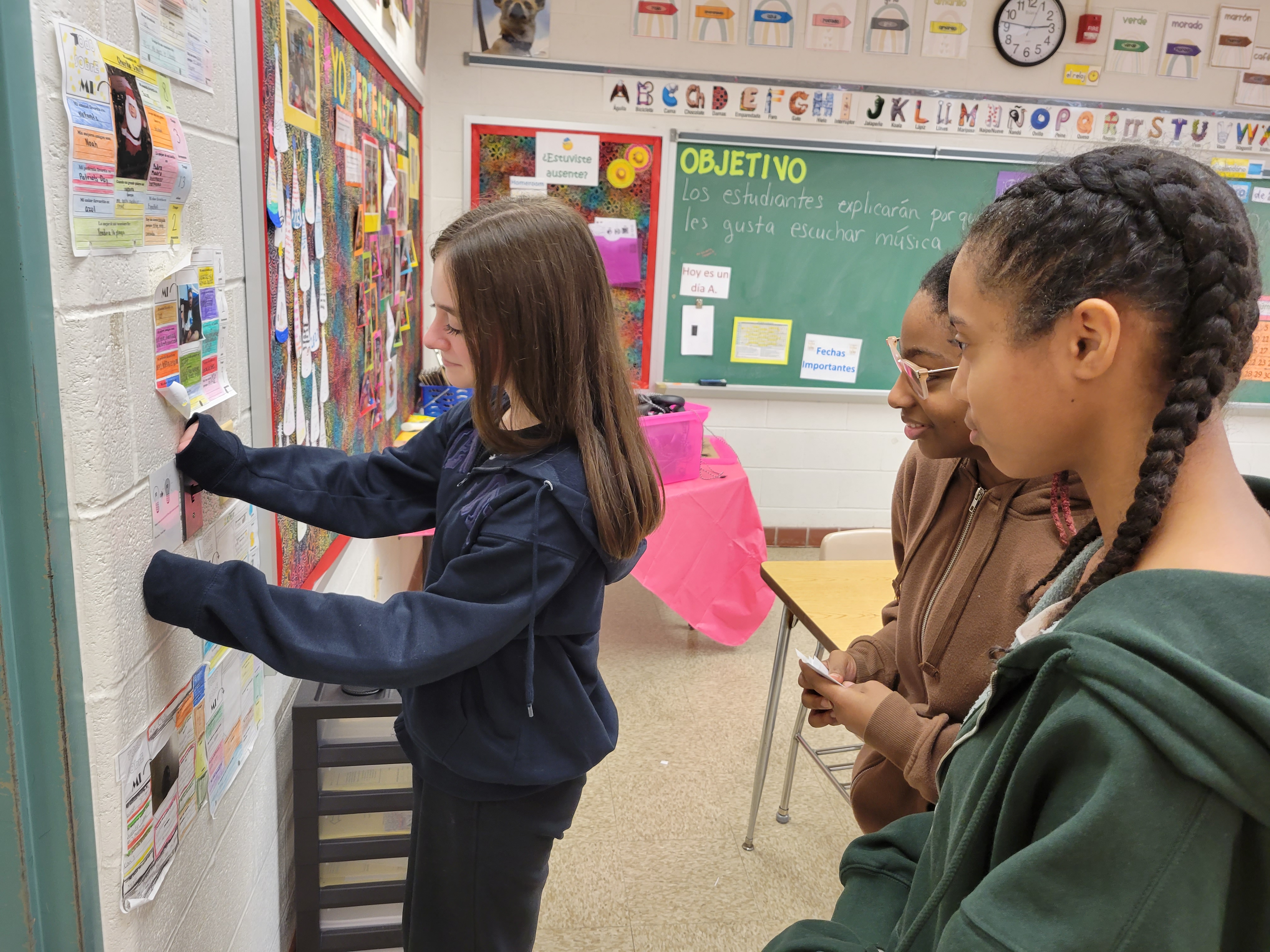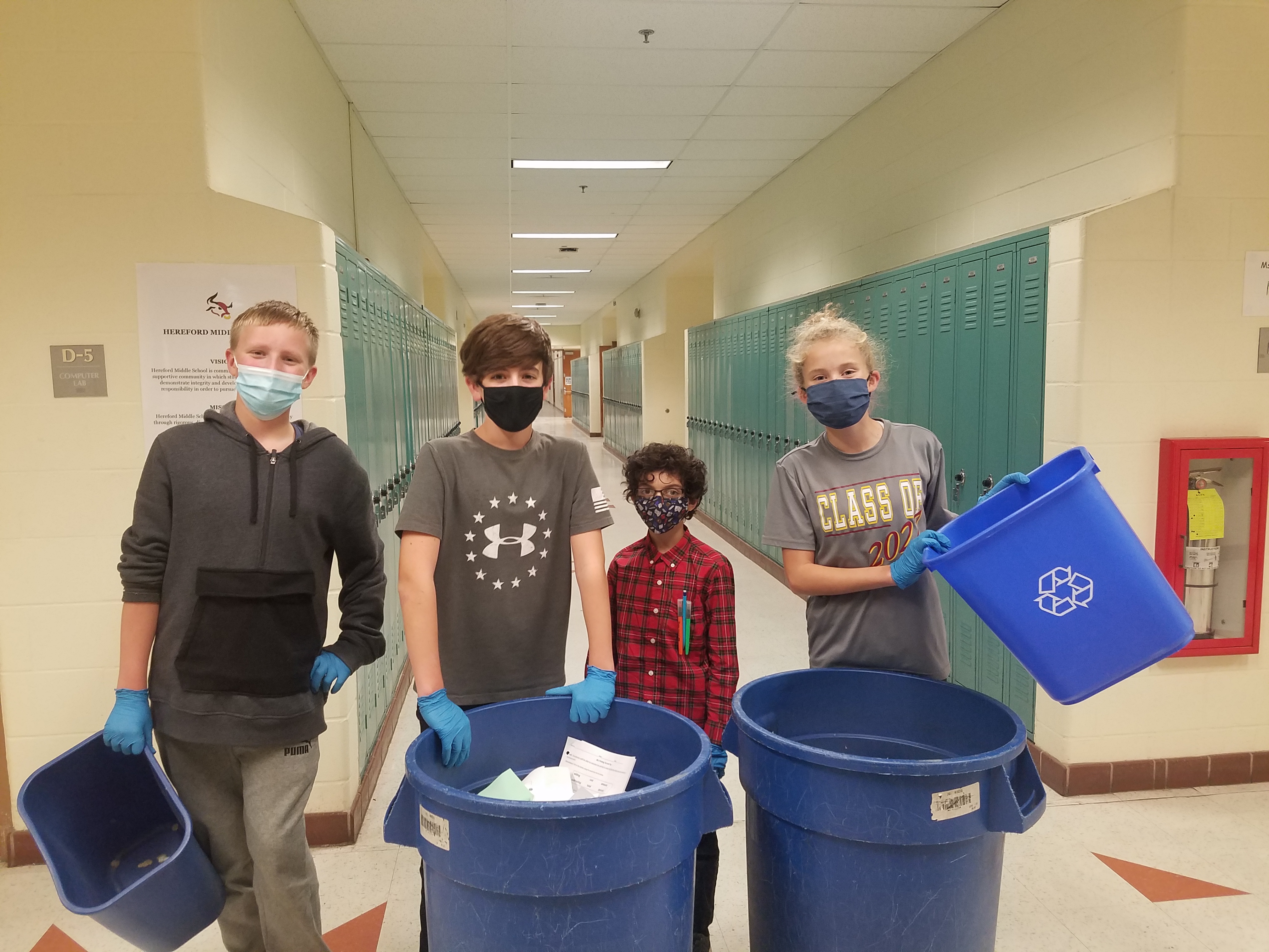 Students in our environmental club, The Bay Savers, sign up weekly to pick up recycling. Student create three teams to circulate the school hallways and pick up the recycling from the classrooms. Student Green teams regularly monitor, track, and/or manage the school recycling bins