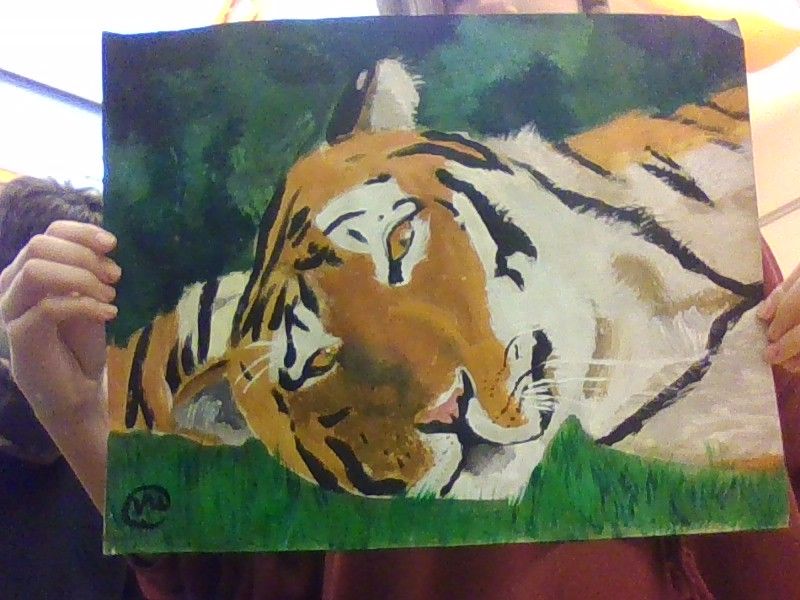 In 7th grade art, students discovered and researched an endangered animal to gather information for an informative painting.