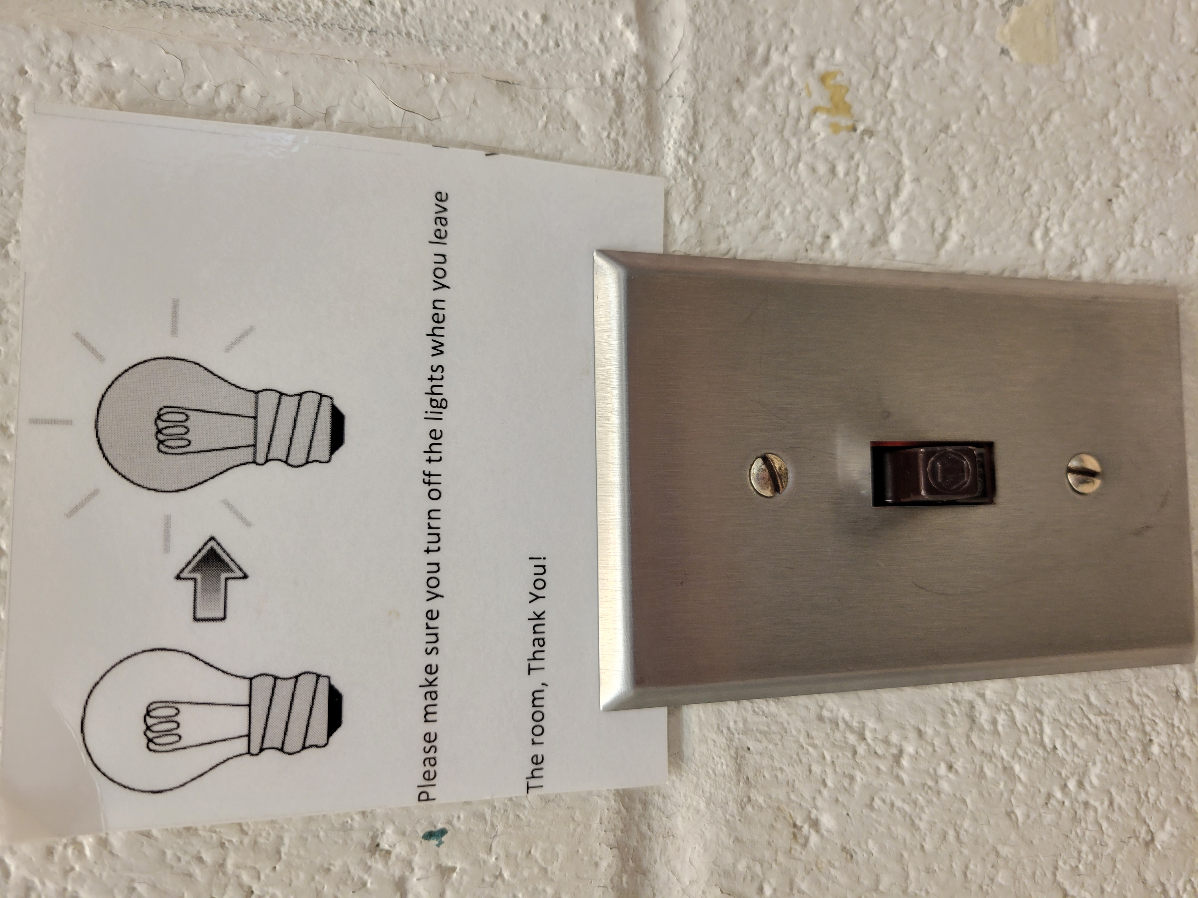 Students created light switch signs and placed them around the school to remind teachers and students to turn off the lights when the room is not in use.