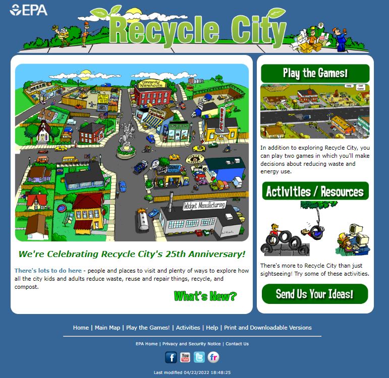 At the end of the year, 8th grade students complete the lesson "Recycle City" This lesson teaches students the importance of recycling especially in a city situation. Online resource: https://www3.epa.gov/recyclecity/
