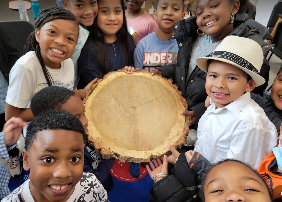 Students worked in pairs to estimate the age of circles that were cut from different trees.