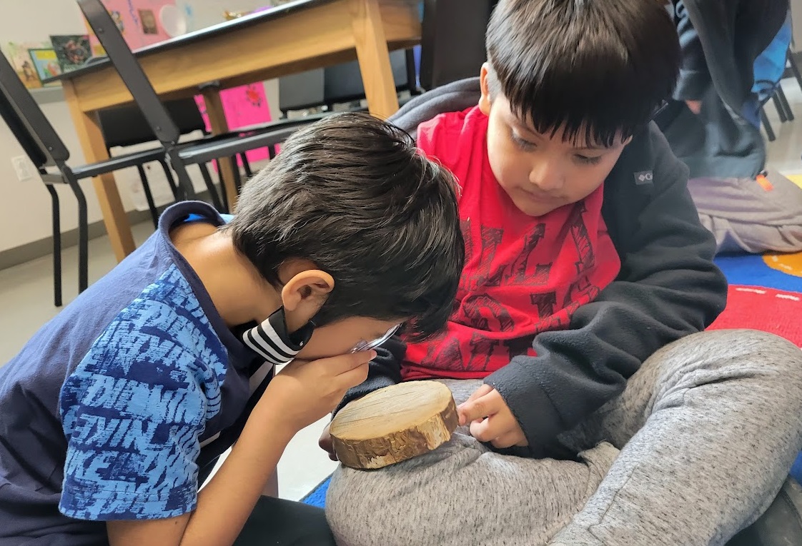 All second grade students learned the definition of the word "environment." Students then took magnifying glasses, whiteboards, and markers outside to observe biotic and abiotic organisms in our school's environment.