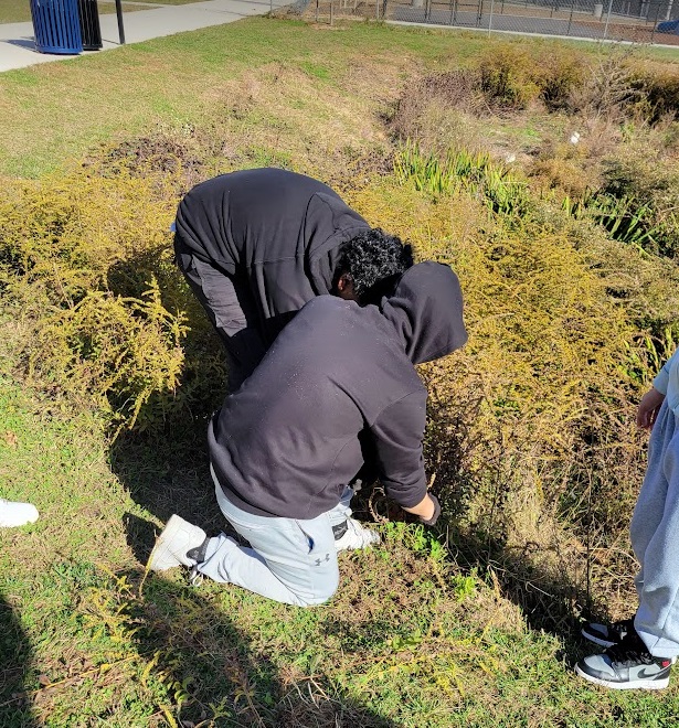 Students in Green Team and in Environmental Science classes collaborate to maintain the school's gardens.