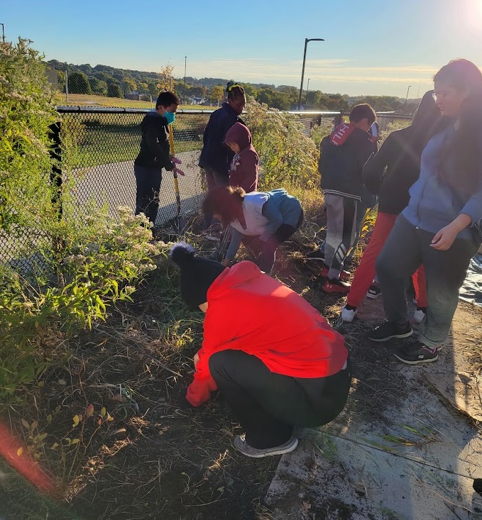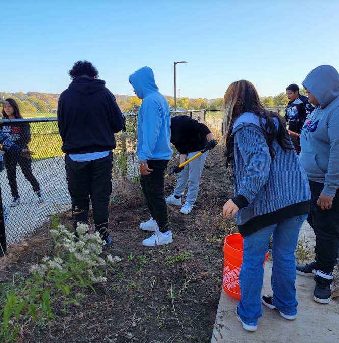 8th graders learned about native plants and the importance of pollinators. Students then went outside and transplanted native plants to start a native pollinator garden.