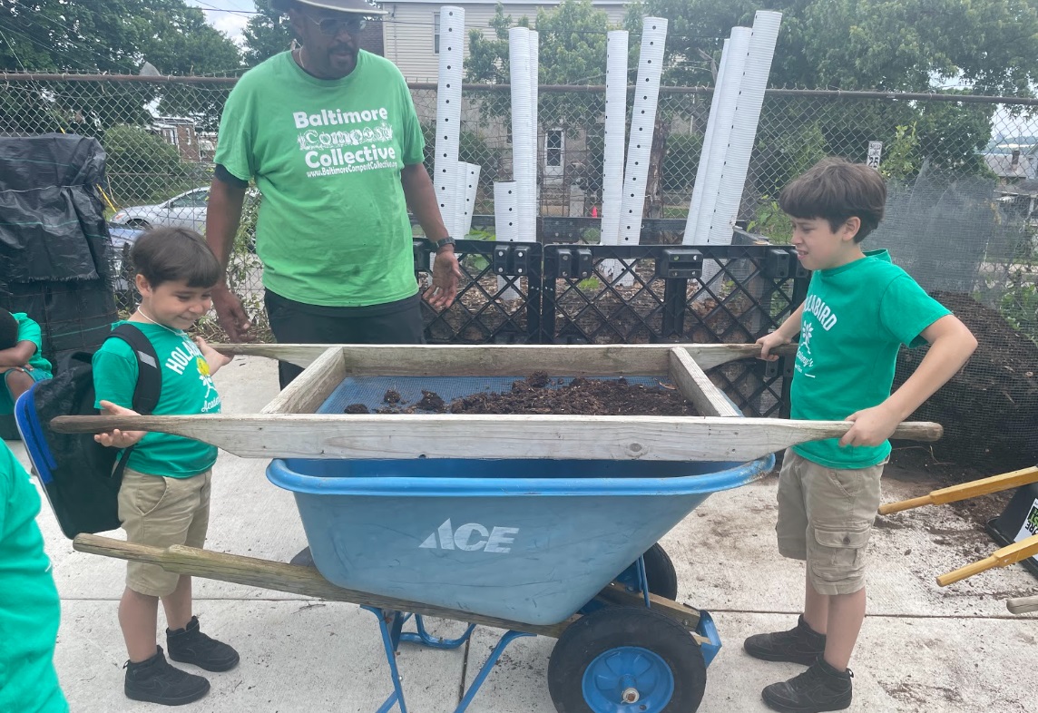 Students went on a field trip to visit the Baltimore Compost Collective to learn about composting on a large scale and to engage in the composting process. After the field trip, one of the Baltimore Compost Collective employees came to Holabird to help improve the composting program at school.