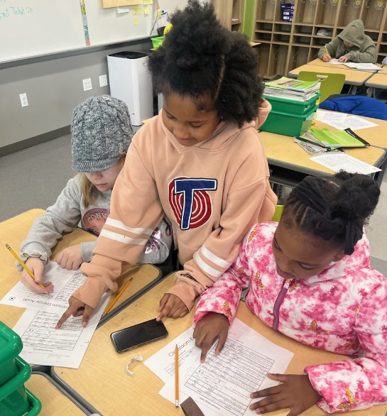 This picture shows a group of 4th grade students that are engaged in the process of completing a classroom energy audit.