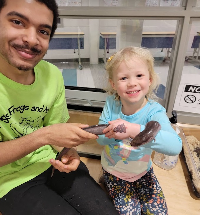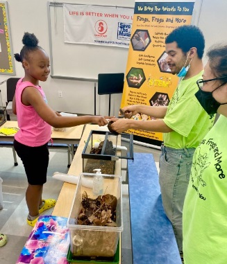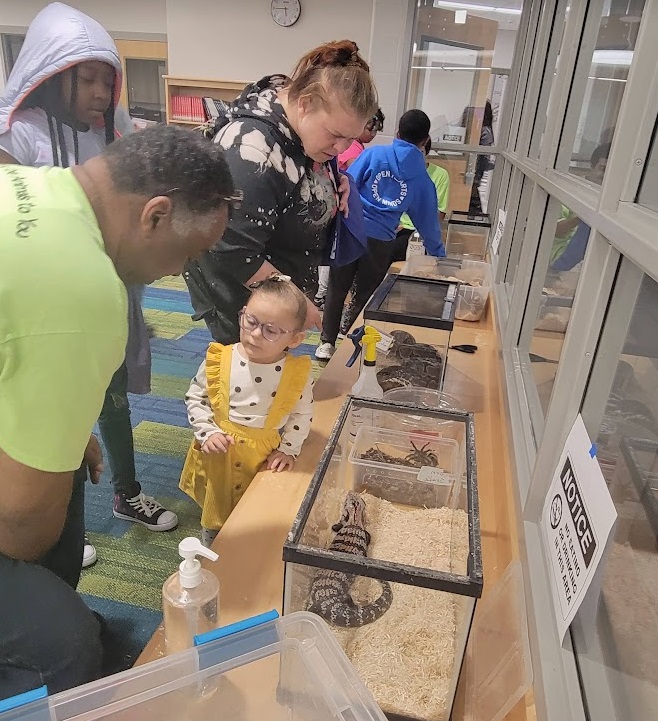 Fangs, Frogs, and More is an organization that provides children with the opportunity to learn about and how to care for reptiles. They frequently run workshops during the school's after school program and have attended family nights as well. This is a sustained partnership because they have provided a wide range of students on multiple occasions with the opportunity to learn about animals.