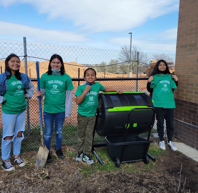 In 2021, the Green Team applied for a grant called the Green Healthy Smart Challenge to start a composting program at school. Our school was awarded $1,000 to purchase materials to start the program. Students built the compost tumbler and have since then been engaged in educating their peers about how to compost and have regularly collected compostable items to make their own compost. The compost will be ready to spread in the garden this Spring.