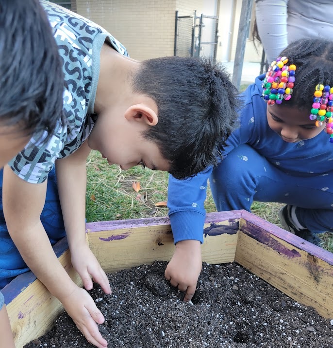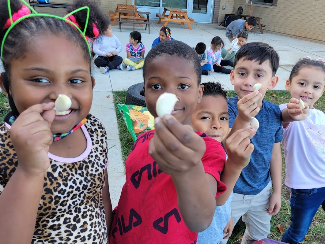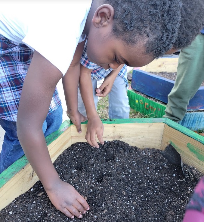 Students in first grade learned about how bulbs grow and different kinds of bulbs. Each student planted a garlic clove in hexagonal beds that were constructed by High School interns at Baltimore City Public School's Great Kids Farm.