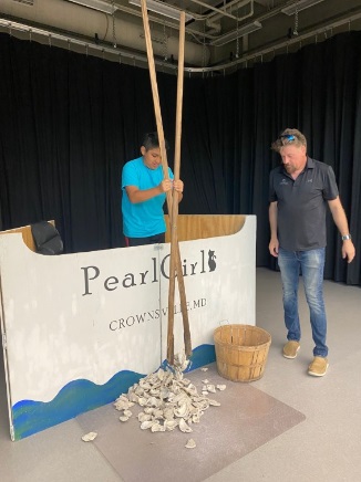 This is a picture of a student engaging in an oyster collection activity at Back to School Night in September 2023.