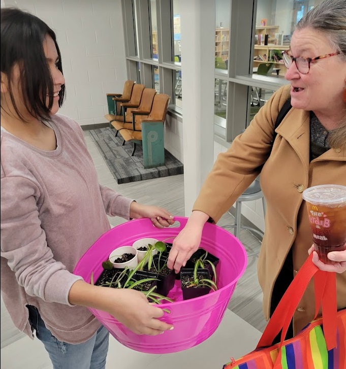 Students on Green Team propagated Spider plants and Pilea plants to distribute to teachers throughout the building. These plants are excellent air purifiers so students encouraged teachers to take one or more plants in an effort to create healthier learning spaces.