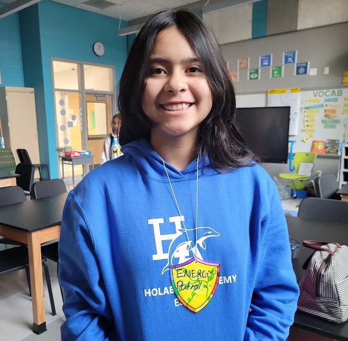 The entire school participated in a "Lights Out Day" celebration to promote awareness about energy consumption and the impact people can have by proactively conserving energy. Students on the Green Team made "Energy Patrol" badges and reminded teachers and students throughout the building to turn their lights off and unplug unnecessary devices throughout the day. Our building has an energy dashboard which provides a daily report of how much energy is used in the building and for what purpose. the data provided by the energy dashboard on Lights Out Day showed a decrease of 400 kwh from the day before, which was a half day.