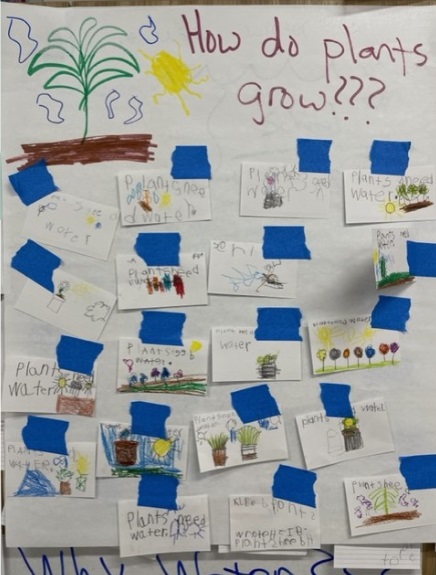This picture shows a chart with student responses to the question "how do plants grow?"