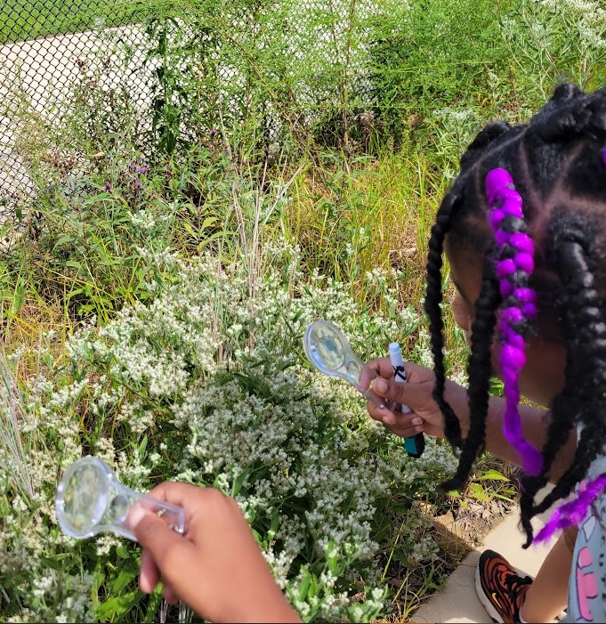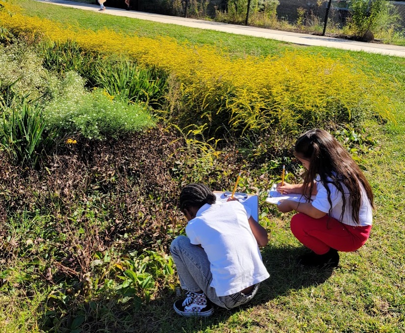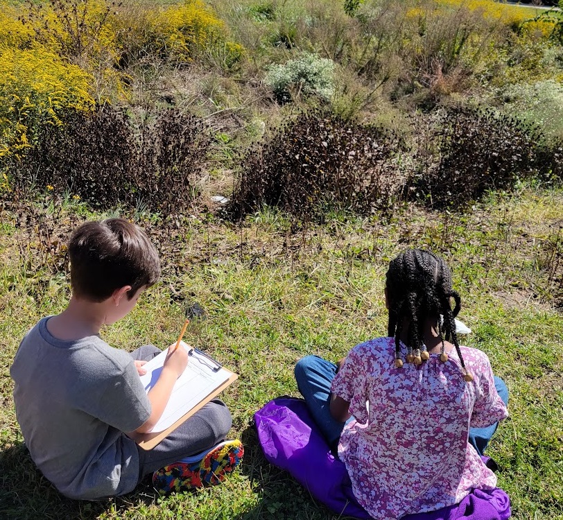 Students observed native plants and the pollinators flying from plant to plant. Students drew pictures of the bees and plants they saw in this garden bed.