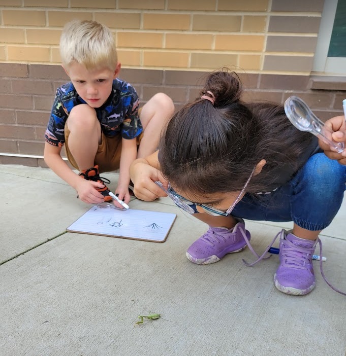 Students found a praying mantis in our outdoor learning area. They observed it's actions with a magnifying glass and drew pictures of it.
