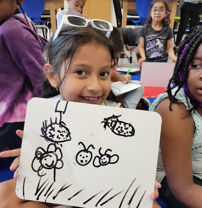 Students brought their drawings inside to share with their peers and discuss the variety of organisms in our local outdoor ecosystem.