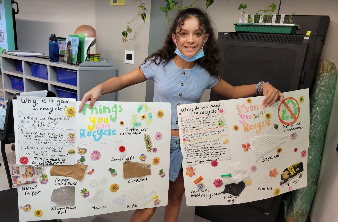 6th grade students learned about what is and is not recyclable, how the recycling process works, and why it is important to recycle. Students made posters to put up around the school to spread awareness about why people should recycle and what is recyclable.