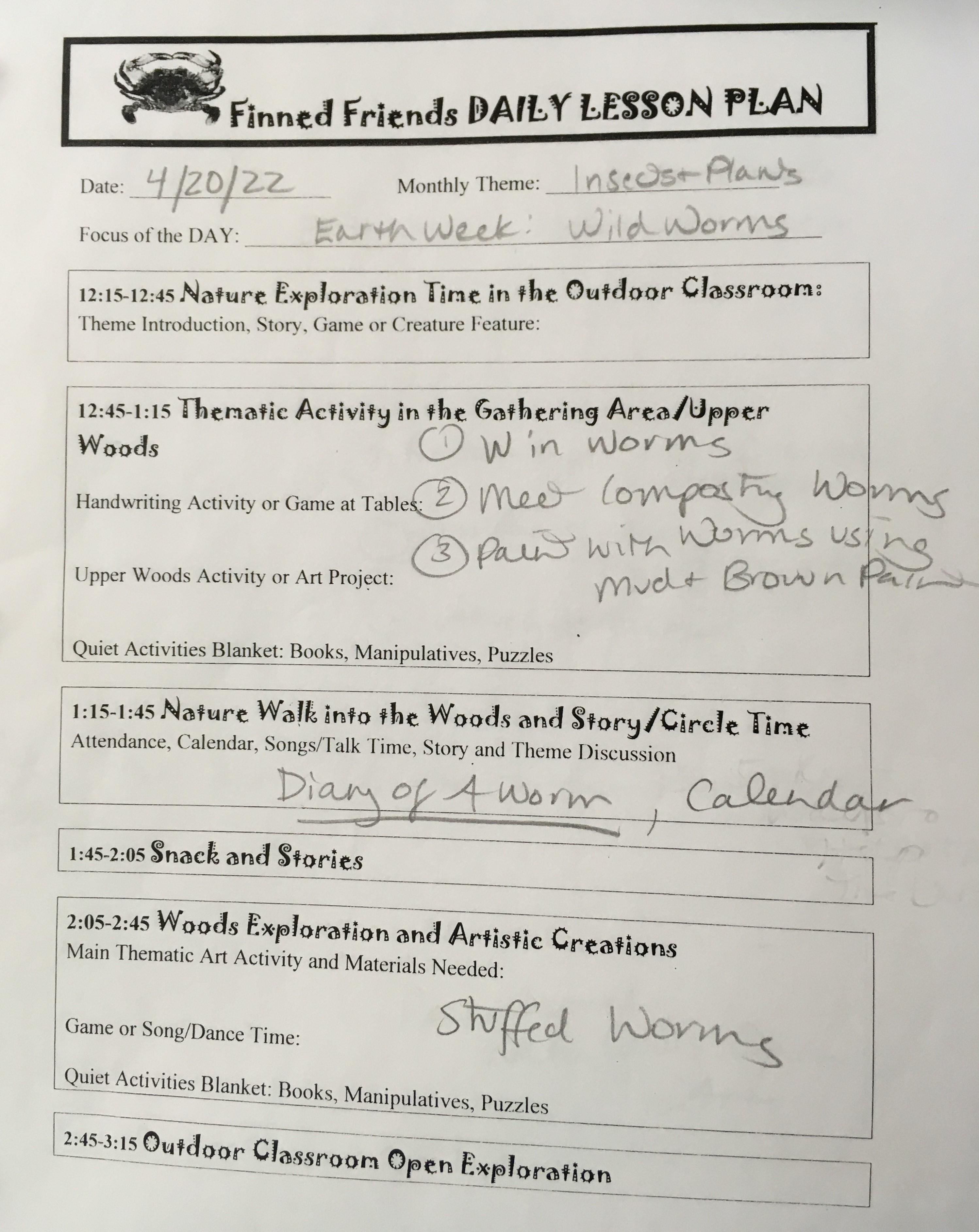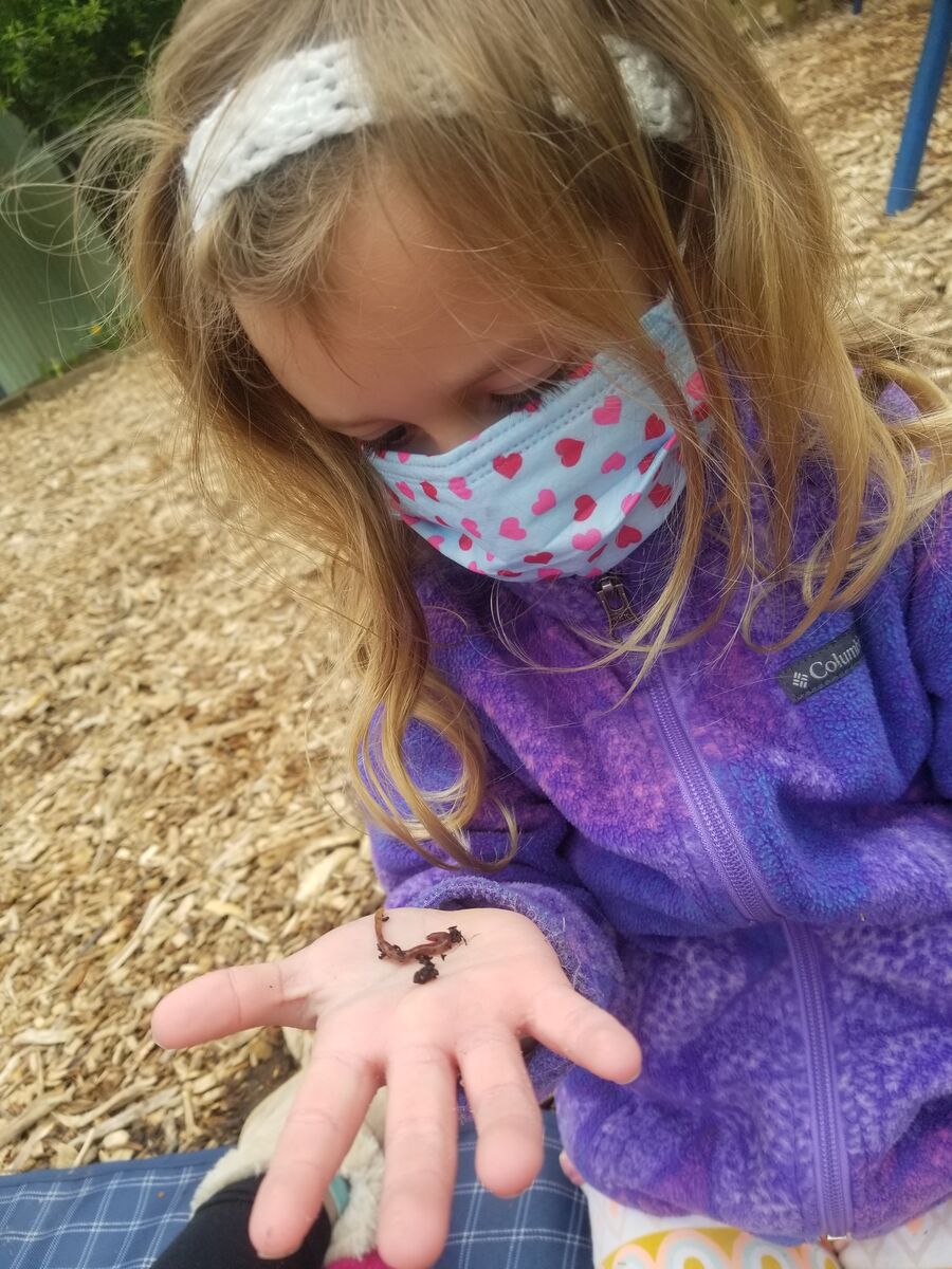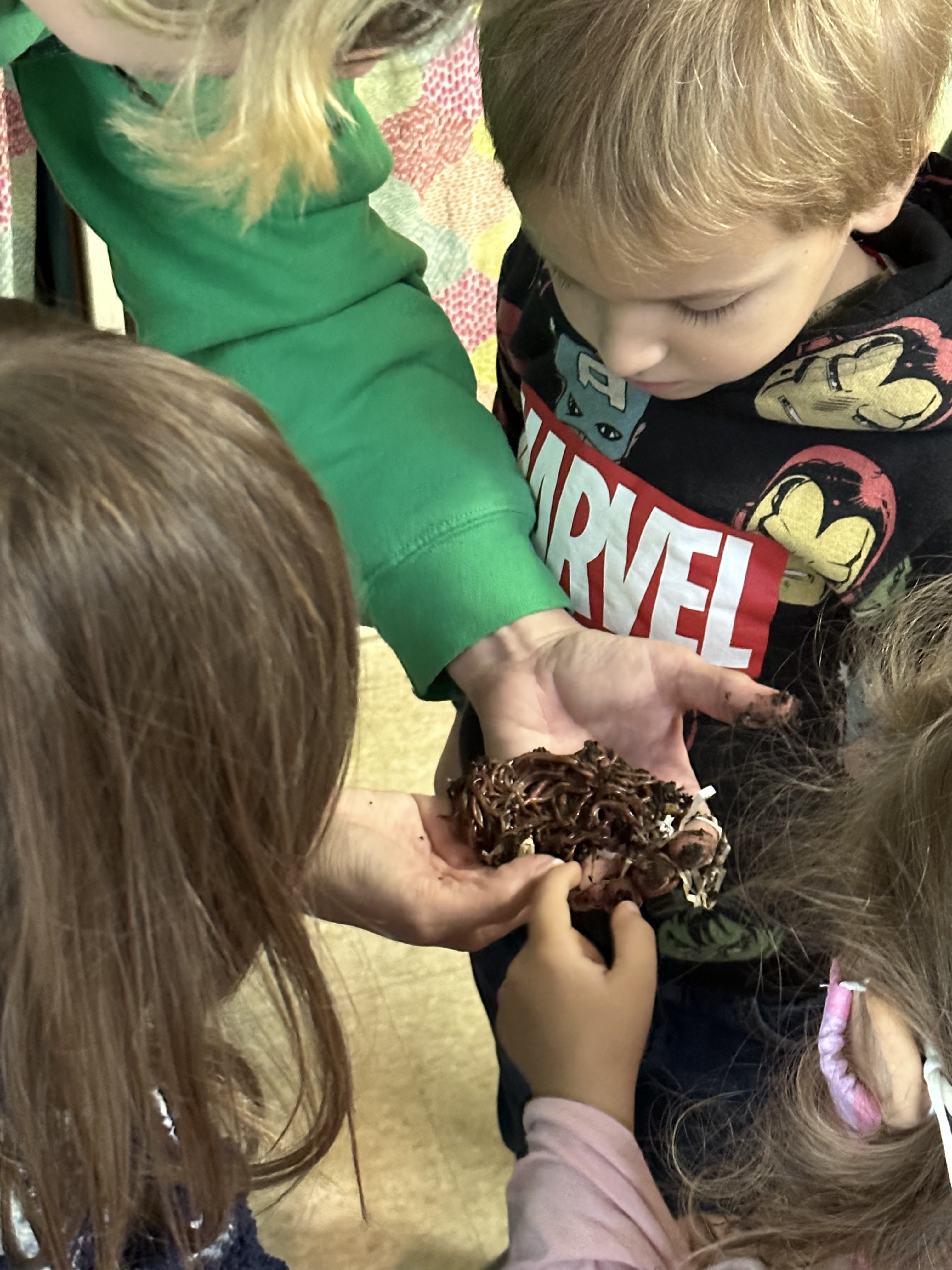 Our 3/4 year old class learned about worms, painted with rubber worms, and met our composting worms.