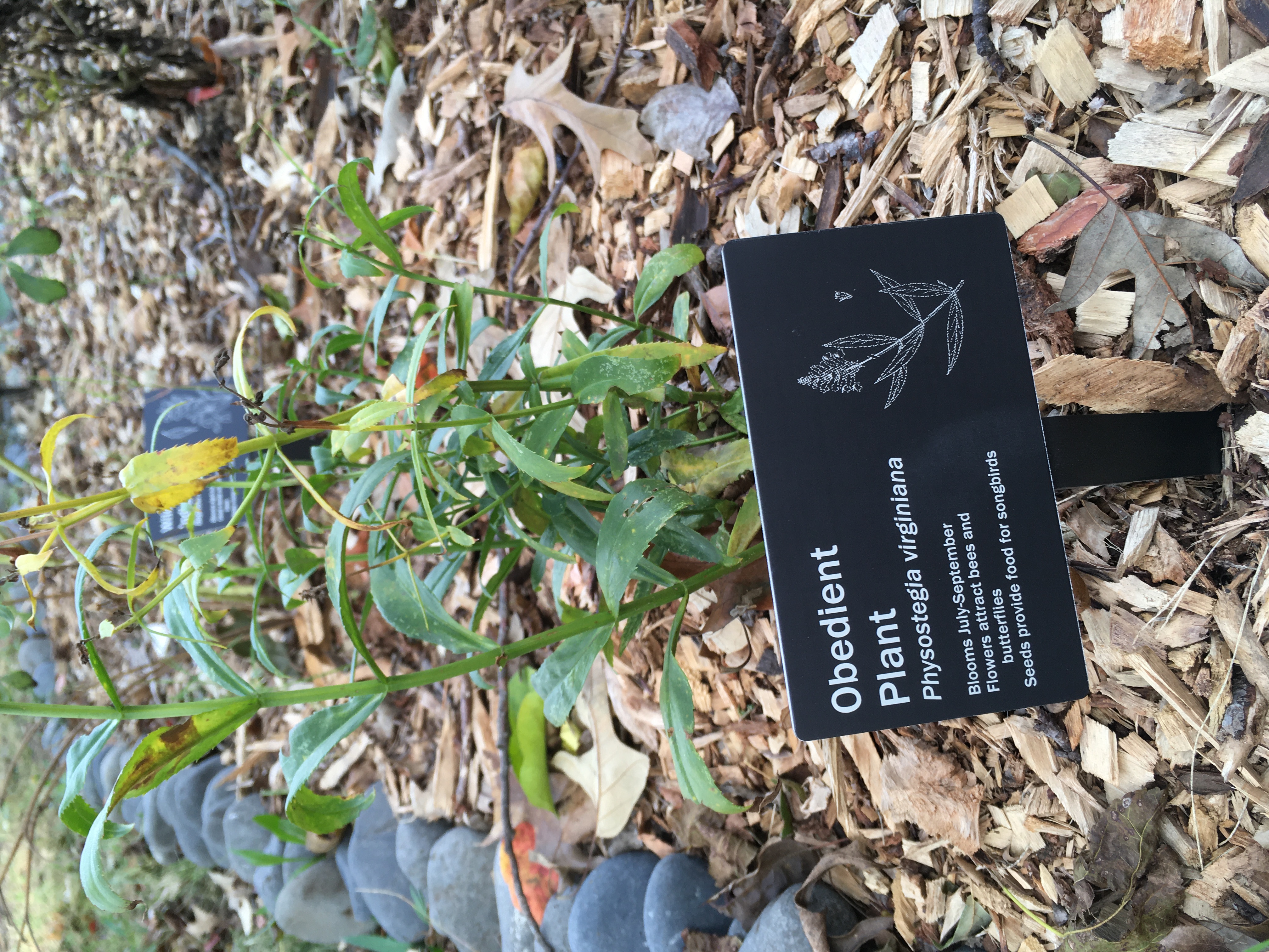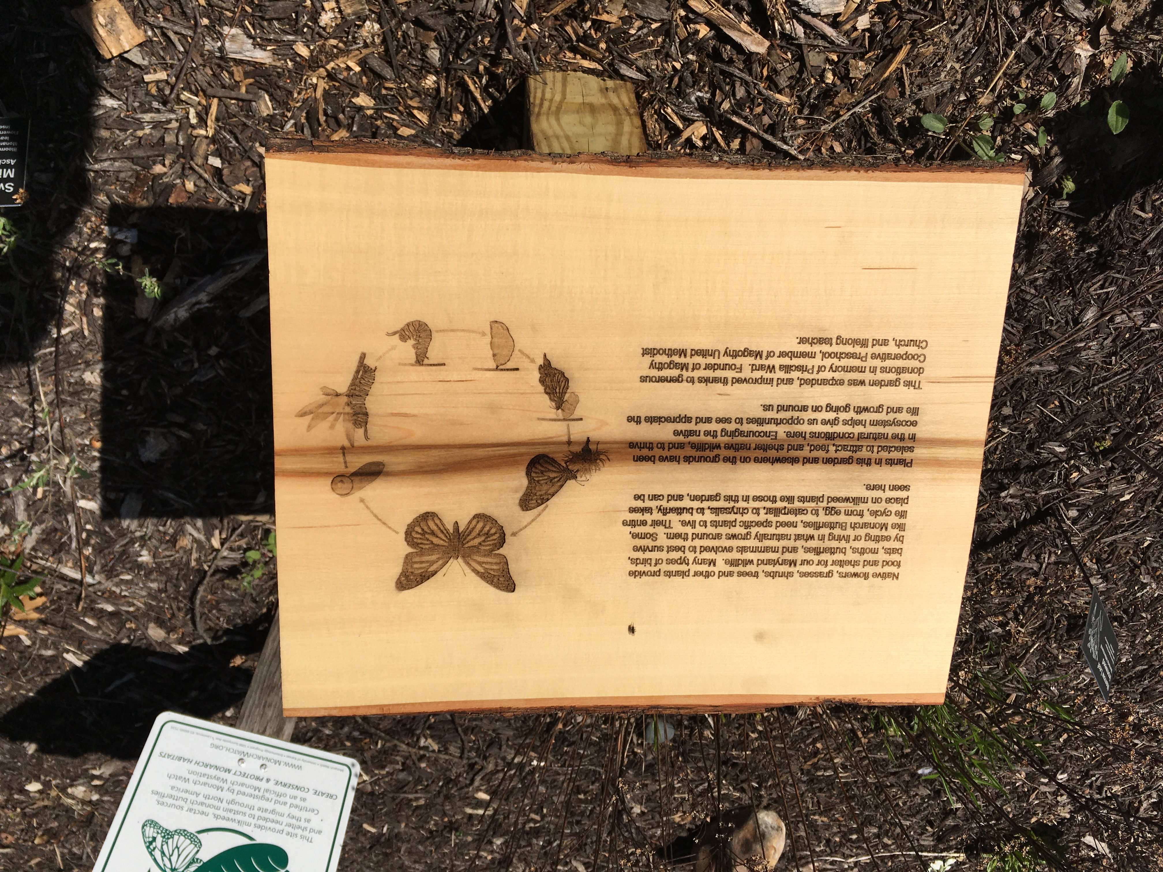 Sign in our Monarch Waystation explaining native plants and their benefits. Purchased with funds donated by teachers at Woodside Elementary for garden improvement.