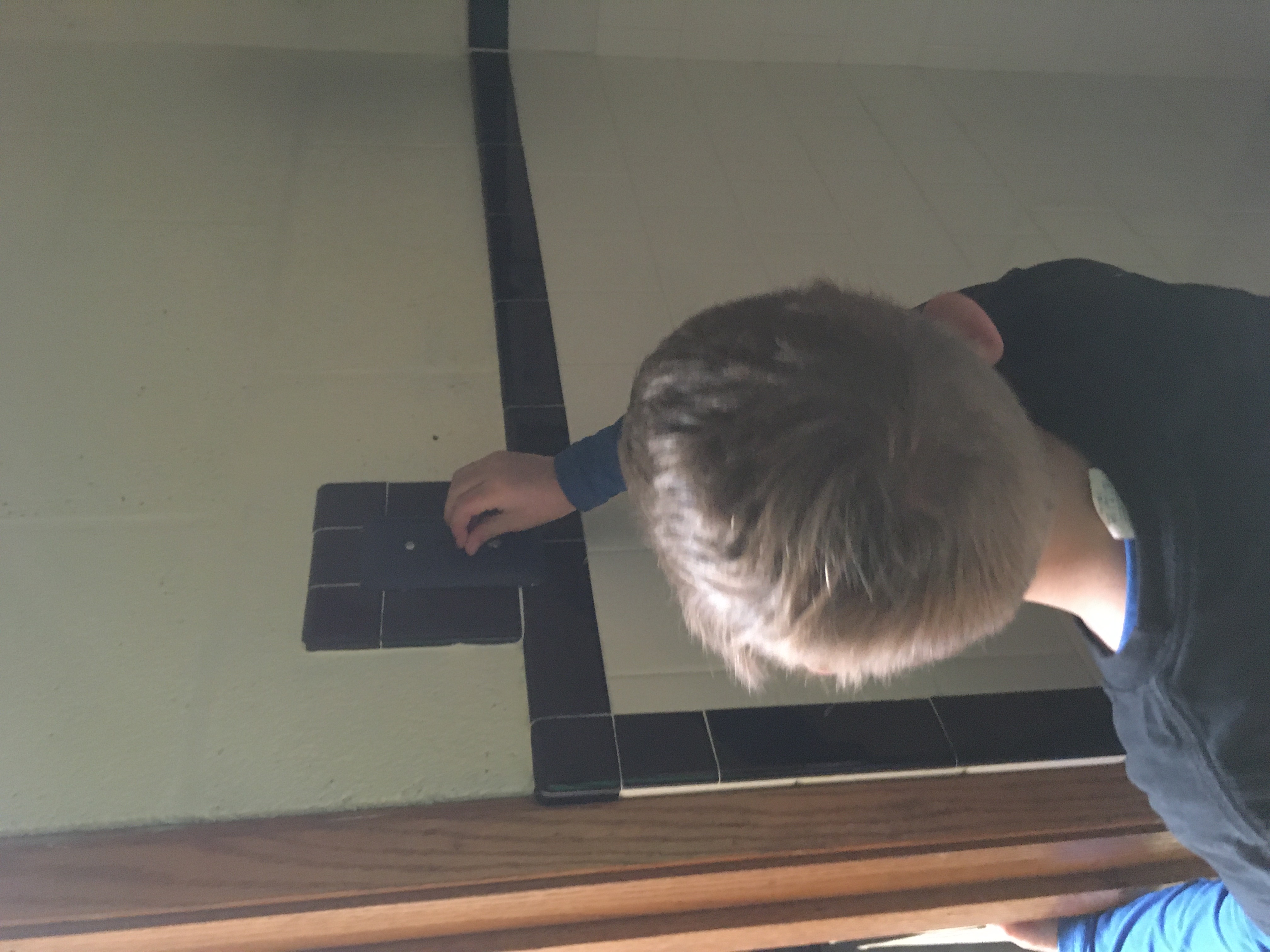 Students turn on the lights in the boys bathroom when they enter and turn them off when they leave instead of leaving them on for the school day. The girls room has a window and utilizes daylighting.