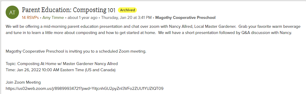 Invitation to our families to online Parent Education on Composting.